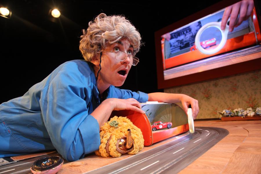 Exploring themes of environmental and civic responsibility, the survival of small towns and the strength of women, young and old, the story is inventively brought to life using slot car racing. Cameras are situated around the circuit to magnify the action live onscreen, putting the audience in the driving seat as they follow Red on her adventure.