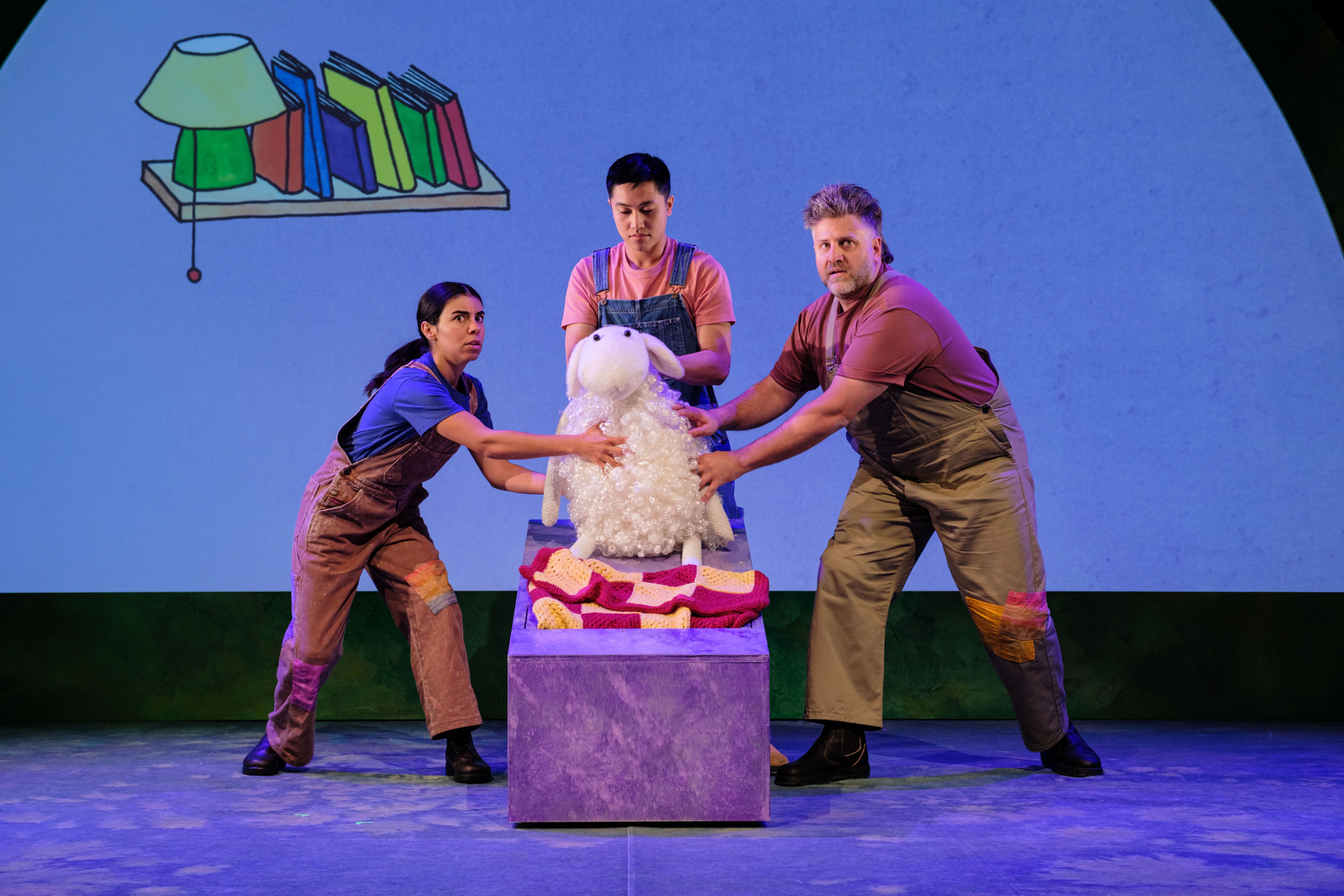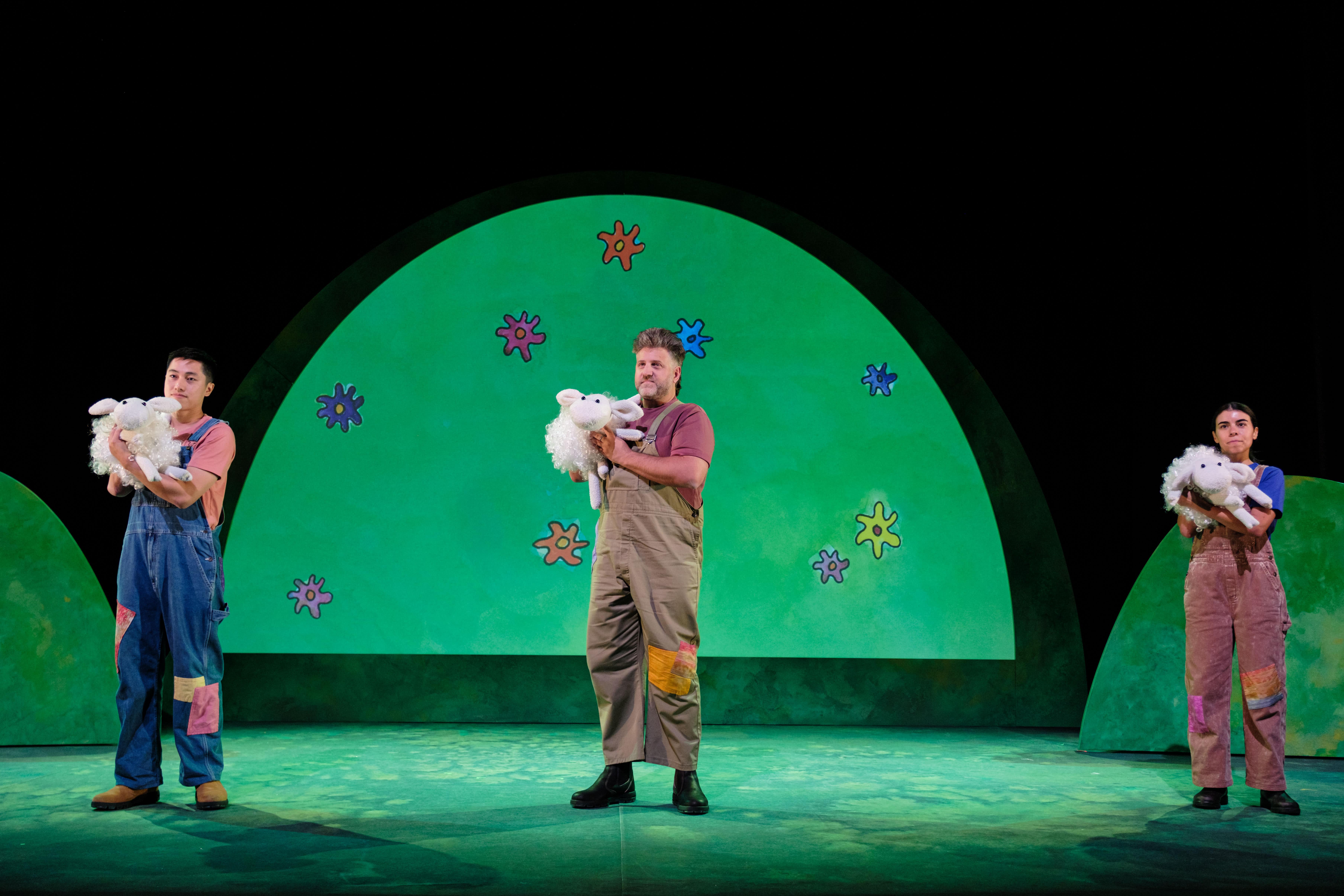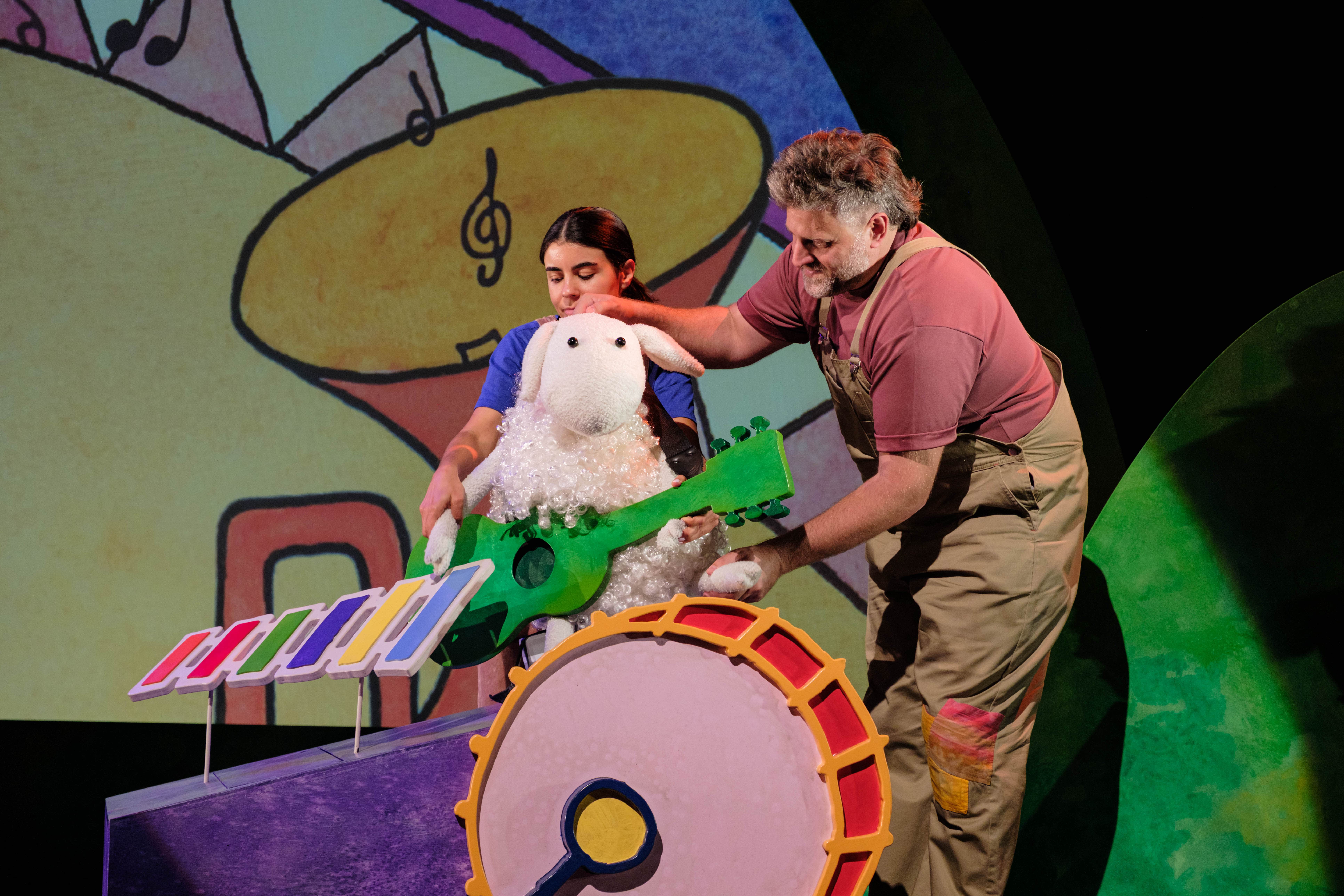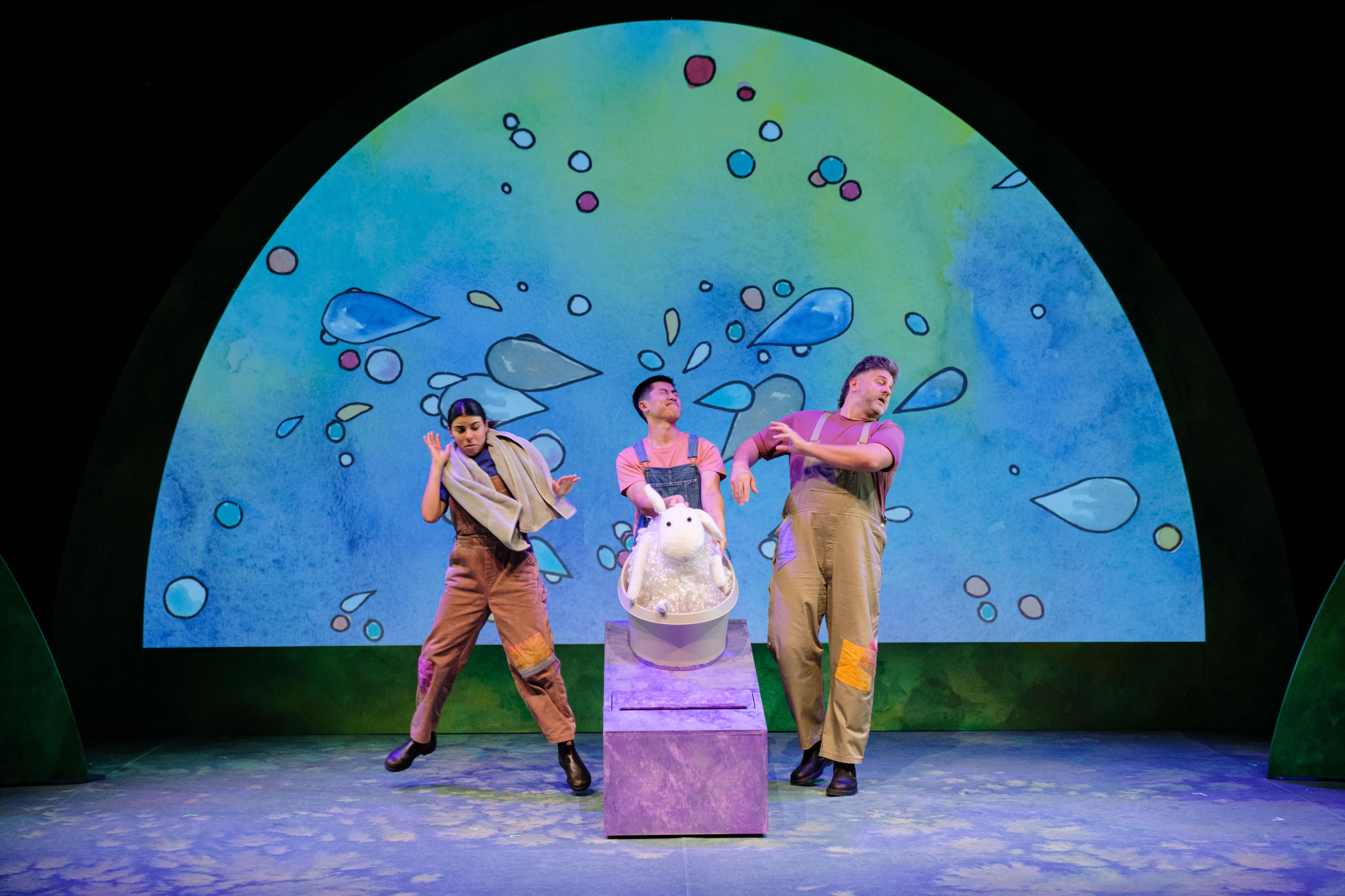 Where is the Green Sheep? is an immersive visual theatre experience based on the beloved children’s book by Mem Fox and Judy Horacek. We meet Blue Sheep who loves blue flowers and Red Sheep who loves to cartwheel in the fields, Bath Sheep who loves bubbles and Bed Sheep who loves to bounce... But where IS that Green Sheep?